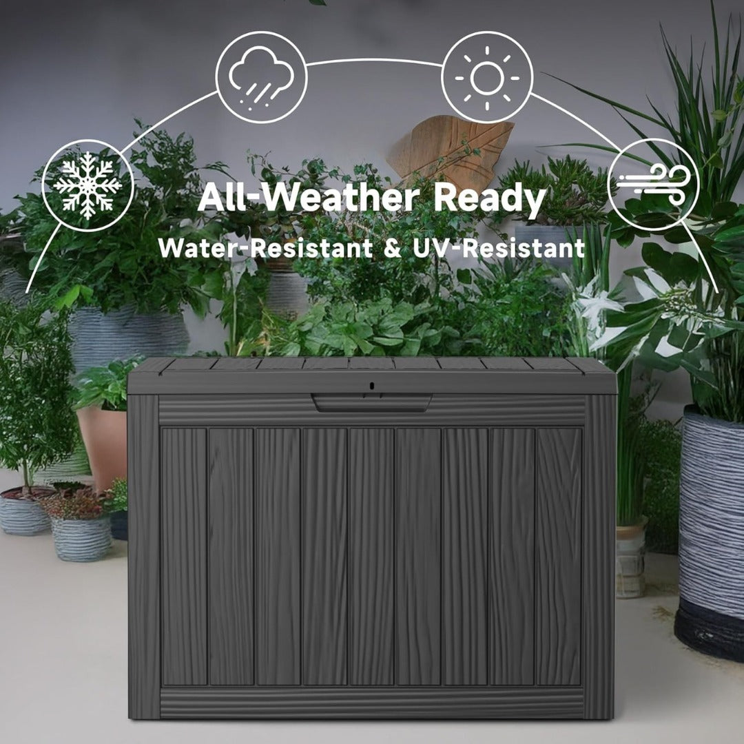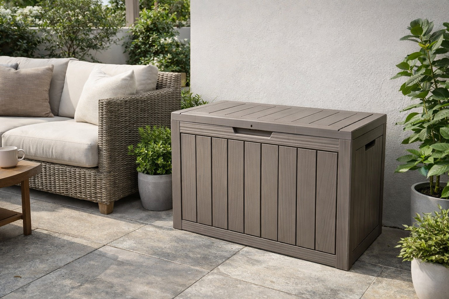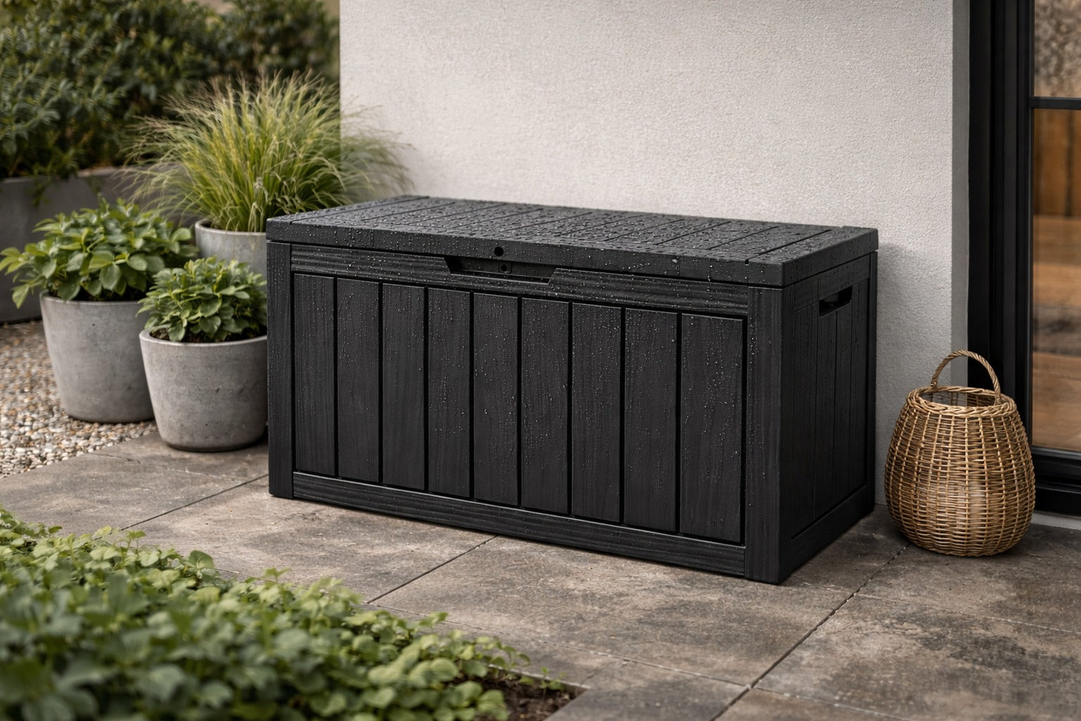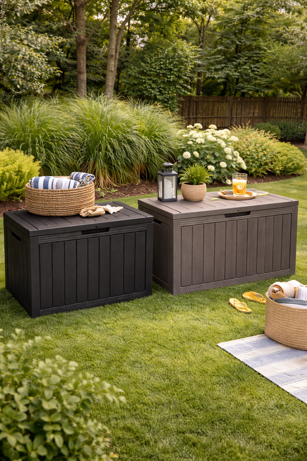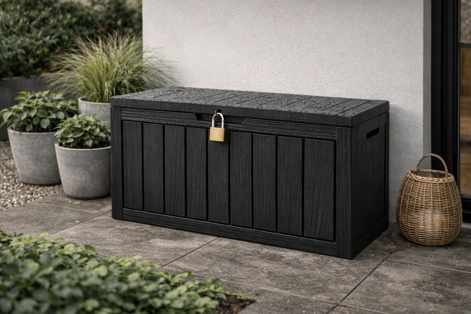 Made from high-quality, eco-friendly resin, this outdoor storage box is fully waterproof and UV-protected. It helps prevent cracking, fading, and sun damage — keeping your patio cushions, tools, and accessories safe all year round.