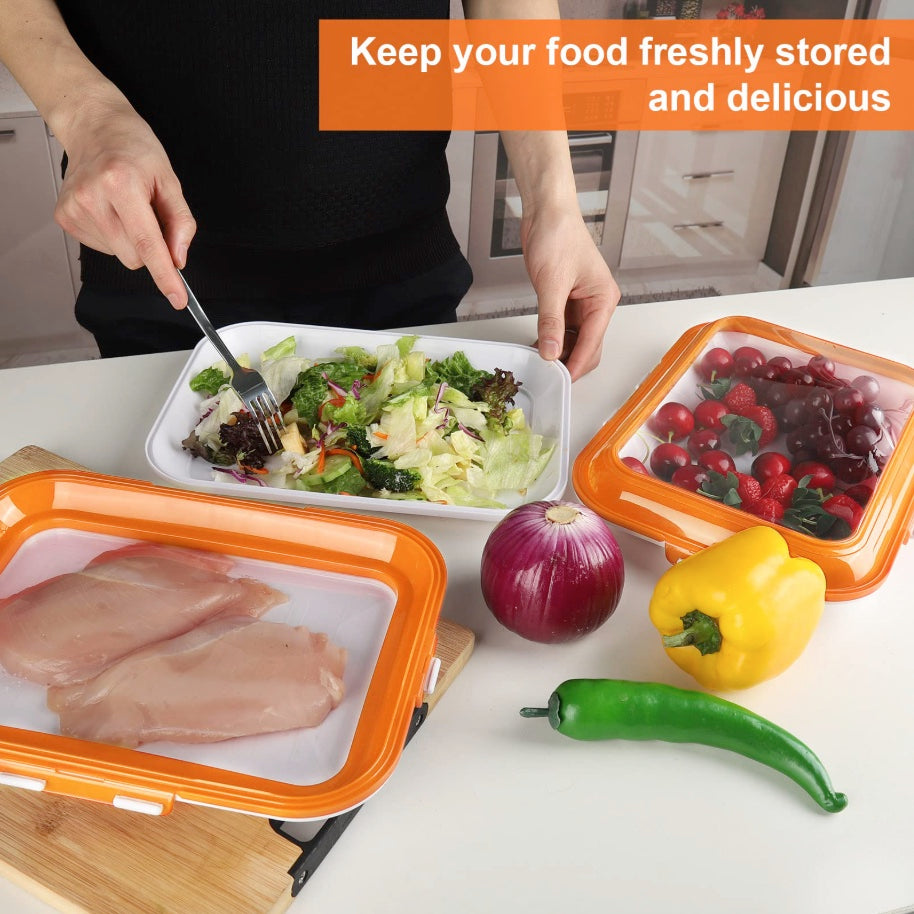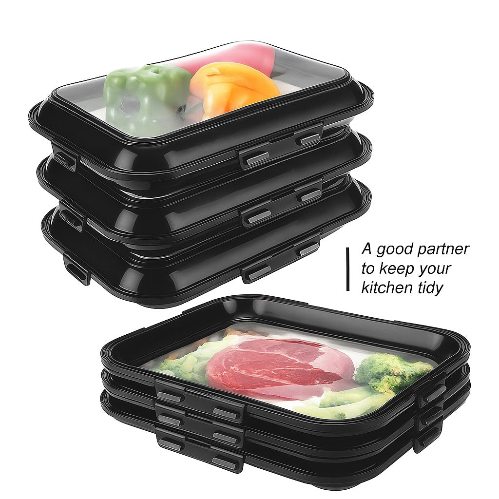 Keep your food fresh and organized with this 3-piece Food Preservation Tray Set, designed with a reversible stretch vacuum lid that locks in freshness and flavor. Made from premium PP and TPU materials, these reusable trays are ideal for storing meats, fruits, vegetables, leftovers, and more. The airtight seal prevents leaks, while the stackable design saves space in your fridge or pantry. Perfect for home, picnics, or travel, these trays help you enjoy fresh food anytime, anywhere.