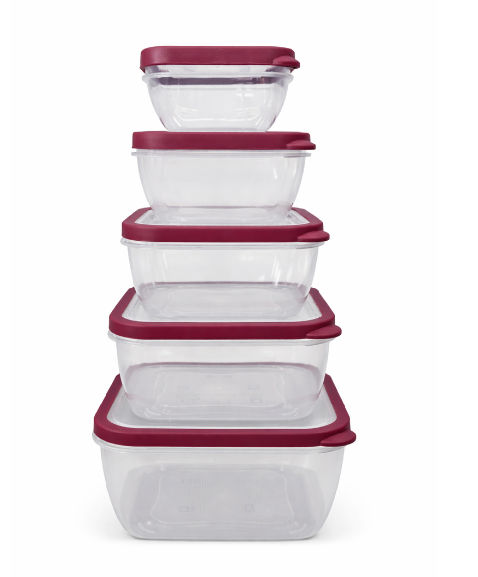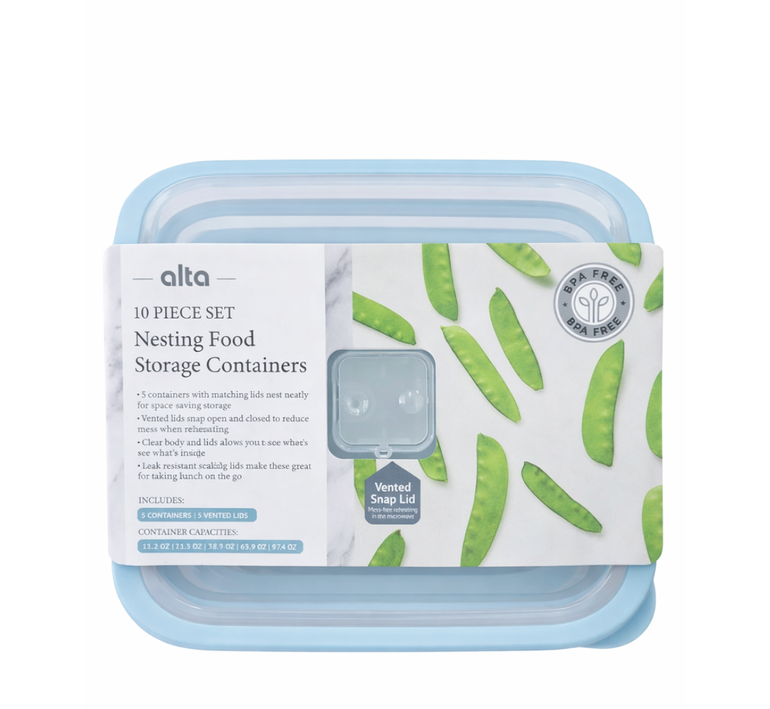 Keep your kitchen neat, your meals fresh, and your storage effortless with the Alta 5-Piece Nesting Food Storage Container Set - 5 Containers - 5 vented Lids